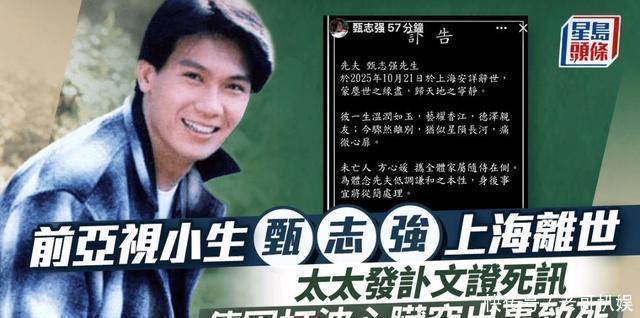 近年来,许多香港影视黄金年代成名的演员都陆续去世,而且往往消息来得非常突然,让许多网友都感到错愕,例如日前去世的许绍雄,一个多星期前还在更新视频,当时看上去毫无异样。10月31日中午,香港影视圈再传噩耗:前亚视小生甄志强去世,终年59岁。